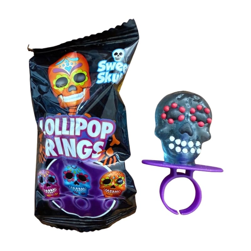 Op zoek naar een opvallende en lekkere traktatie? Deze zak met 8 lollipop ringen in de vorm van een skull is een echte eyecatcher. De lollipops zijn bevestigd op een ring, zodat je ze kunt dragen én opeten – ideaal voor feestjes, Halloween of gewoon als uniek snoepje.