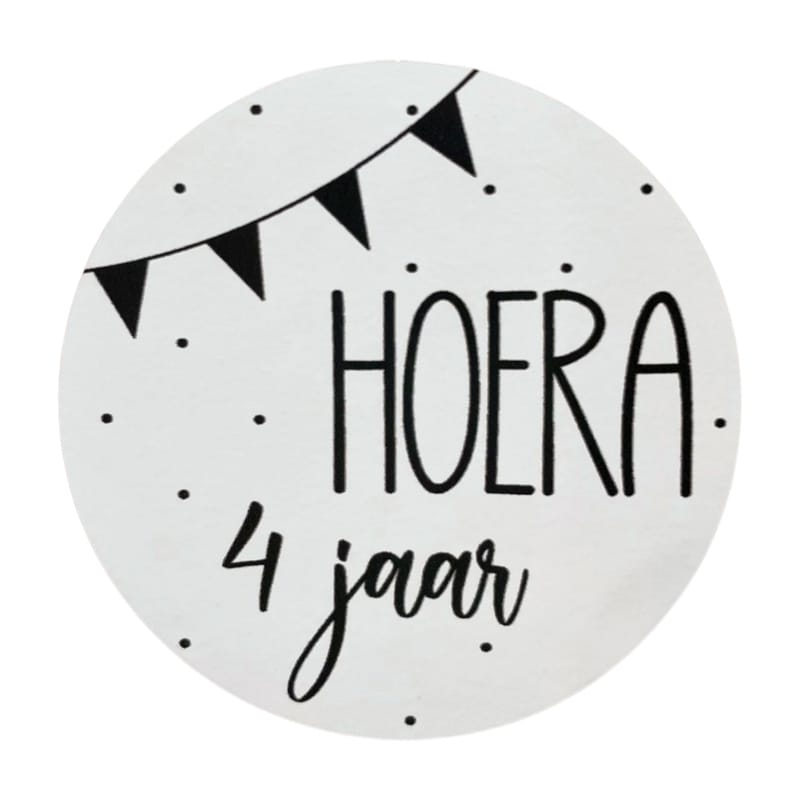Sticker Leeftijd 4 jaar met een diameter van 4,5 cm.